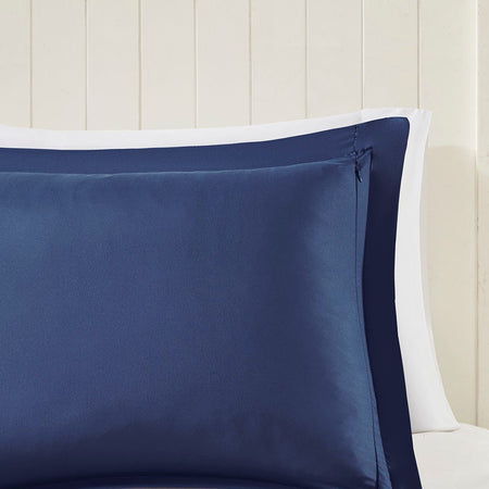 Soft and cozy, the Madison Park Essentials Larkspur 3M Scotchgard Diamond Quilting Down Alternative Comforter Mini Set will make you never want to get out of bed. This comforter is made from ultra-soft microfiber and features 3M Stain Resistant Treatment that helps release stains easily. The down alternative filling provides extra warmth and softness, while the diamond quilting prevents the fill from shifting to provide an even distribution of warmth. Completely reversible, the 2 matching shams (1 in Twin/TwinXL) coordinate handsomely with the comforter and come with a hidden closure for a clean finished look. A duvet cover is not required. Machine washable for easy care, this comforter set is perfect for staying warm all through the night. This comforter features an anti-microbial treatment which is odor neutralizing and lasts through multiple washes.