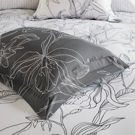 Lilia 9 Piece Reversible Comforter Set with Cotton Bed Sheets - White / Charcoal - Cal King Size