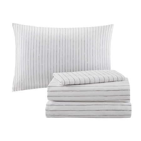Lilia 9 Piece Reversible Comforter Set with Cotton Bed Sheets - White / Charcoal - Full Size