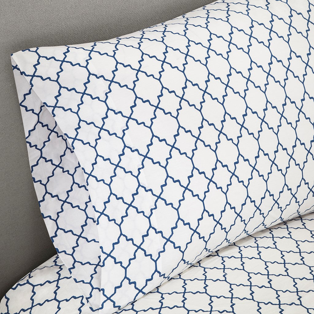 - Reversible contemporary all over fretwork design printed comforter set and cotton sheet set