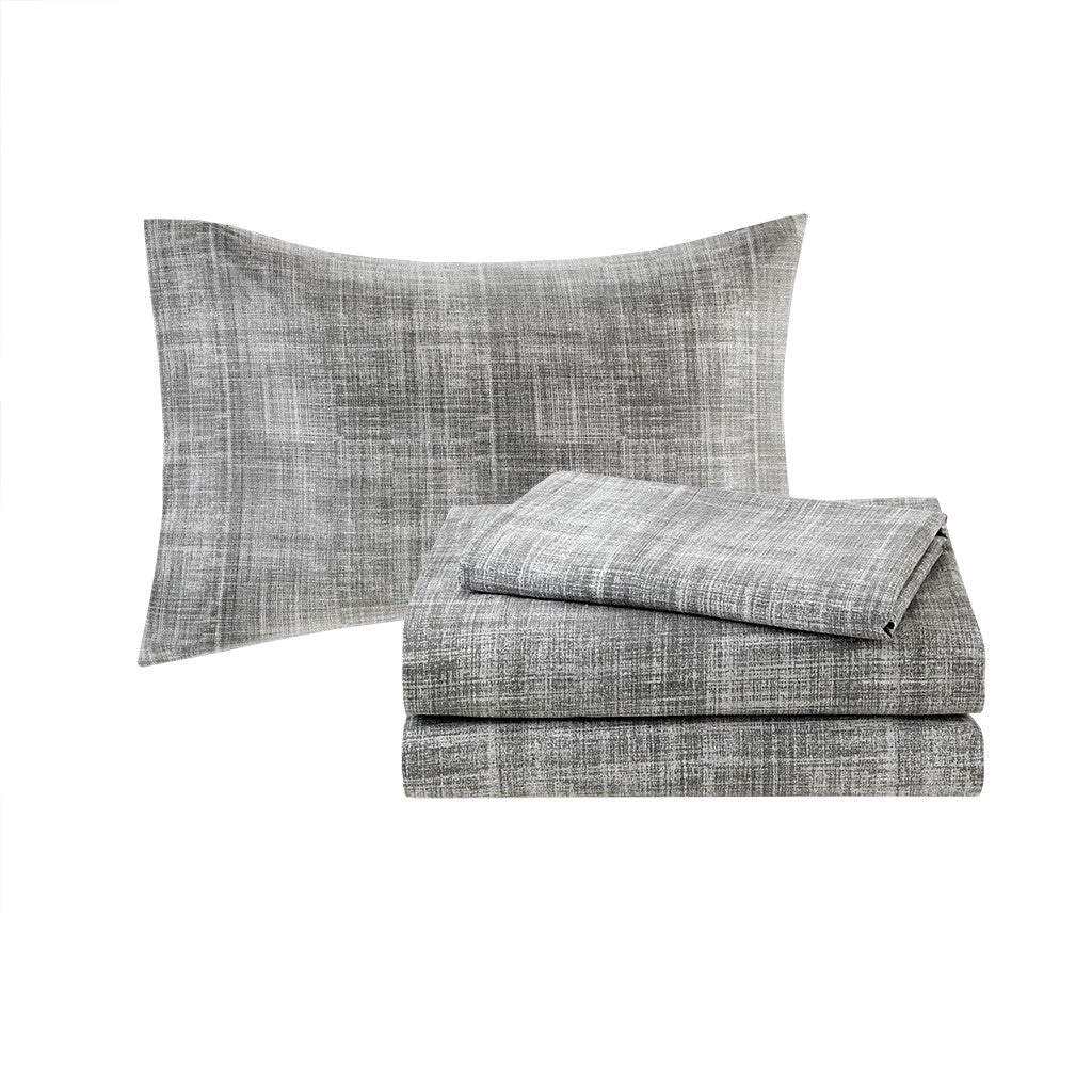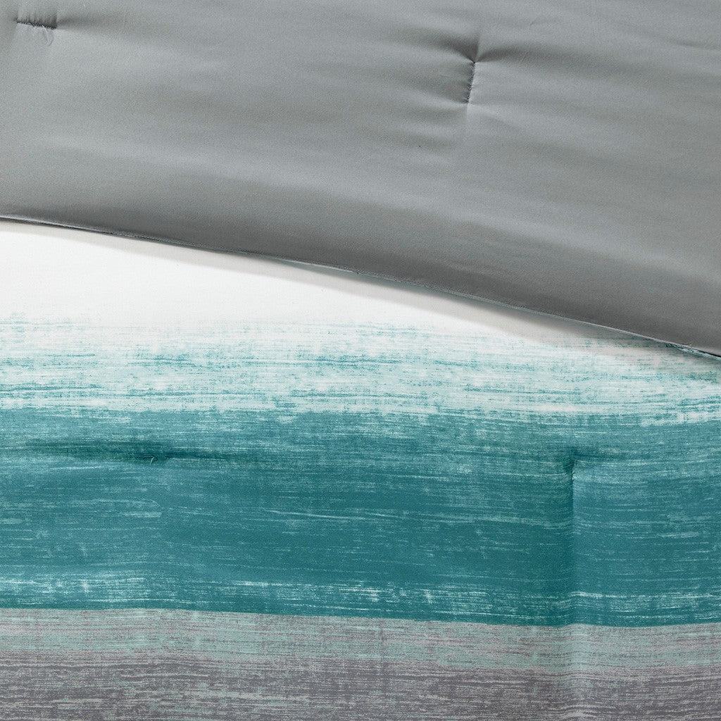 The Madison Park Essentials Saben Complete Comforter and Cotton Sheet Set provides a modern update to your bedroom. A watercolor stripe print is beautifully displayed on the ultra-soft microfiber comforter. The matching shams (1 in Twin Sizes) mirror the pattern of the comforter, while an embroidered decorative pillow and a solid grey bed skirt to complete the bedding set. A coordinating textured grey cotton sheet set is also included to complement the casual style of the comforter. Bringing the best in health and wellness, this bedding set also features an anti-microbial treatment that provides built-in freshness protection, reducing the growth of odor causing bacteria and keeps fabric lasting longer. This bedding set is also OEKO-TEX certified, meaning it does not contain any harmful substances or chemicals, ensuring quality comfort and wellness. This bedding set may come in rolled or compressed packing and will need to be fluffed up. Use a steam iron to help remove wrinkles easier.