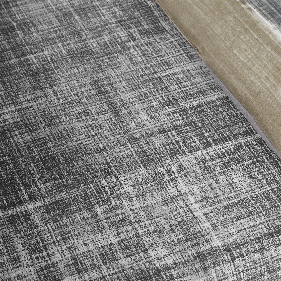 The Madison Park Essentials Saben Complete Comforter and Cotton Sheet Set provides a modern update to your bedroom. A watercolor stripe print is beautifully displayed on the ultra-soft microfiber comforter. The matching shams (1 in Twin Sizes) mirror the pattern of the comforter, while an embroidered decorative pillow and a solid grey bed skirt to complete the bedding set. A coordinating textured grey cotton sheet set is also included to complement the casual style of the comforter. Bringing the best in health and wellness, this bedding set also features an anti-microbial treatment that provides built-in freshness protection, reducing the growth of odor causing bacteria and keeps fabric lasting longer. This bedding set is also OEKO-TEX certified, meaning it does not contain any harmful substances or chemicals, ensuring quality comfort and wellness. This bedding set may come in rolled or compressed packing and will need to be fluffed up. Use a steam iron to help remove wrinkles easier.