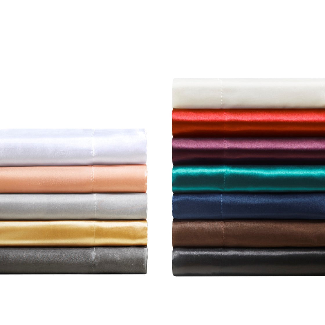 Fall asleep in smooth and luxurious comfort with our wrinkle-free satin sheets. These satin sheets are gentle on your skin and hair, while helping reduce damage causing friction, making this set an essential for your beauty self-care routine. Also included are 2 additional pillowcases to complete your room into full luxury.