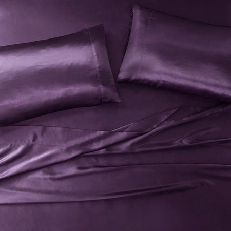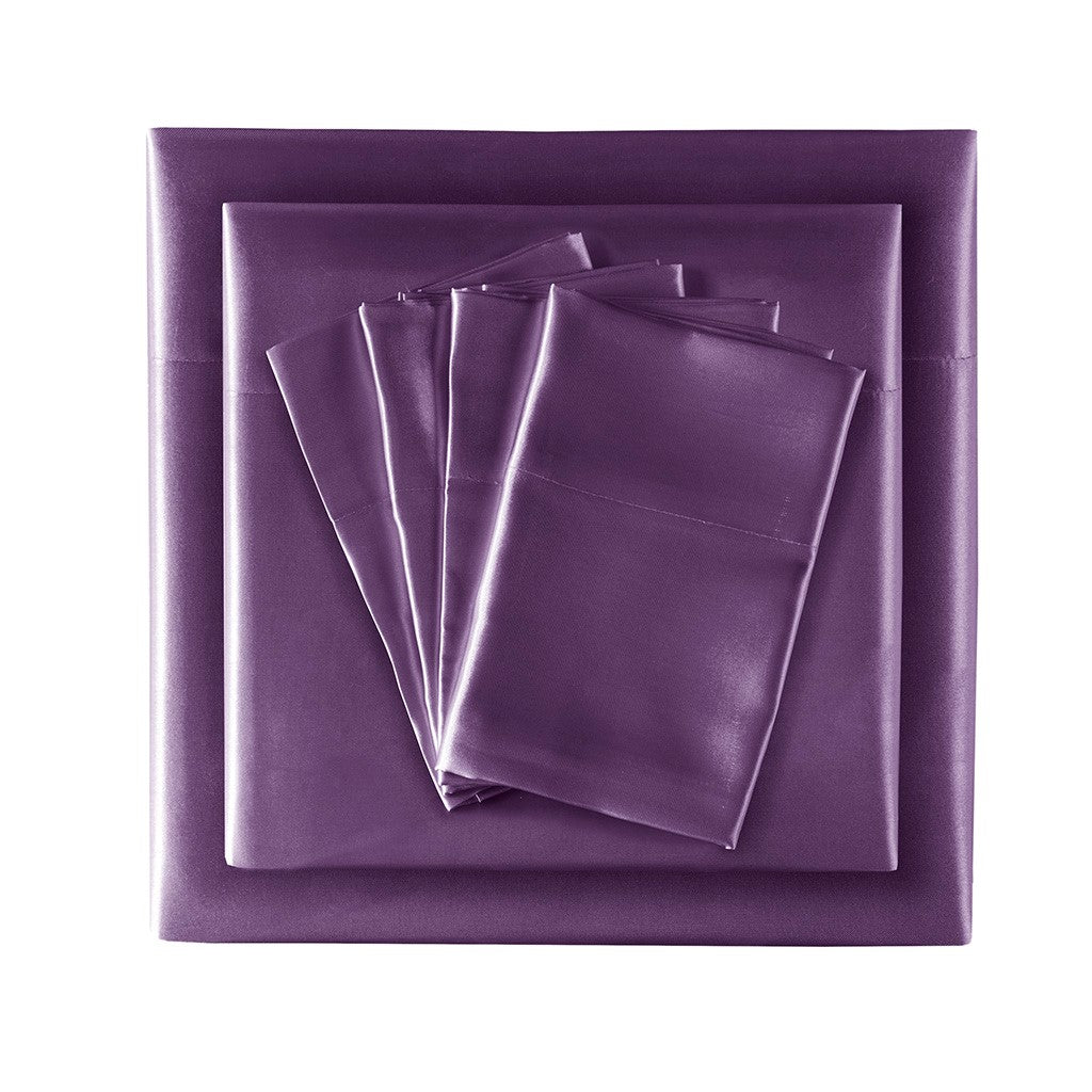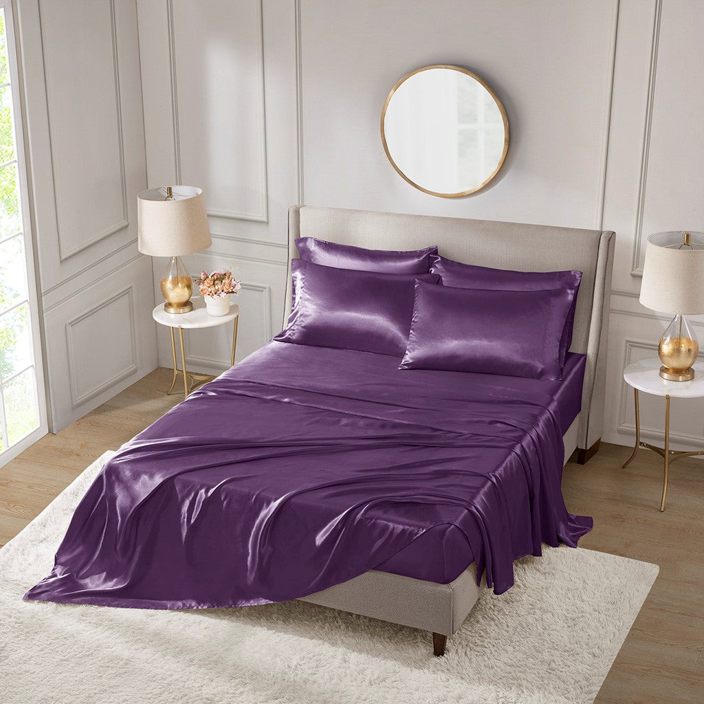 Satin Luxury 6 PC Sheet Set - Purple - Queen Size