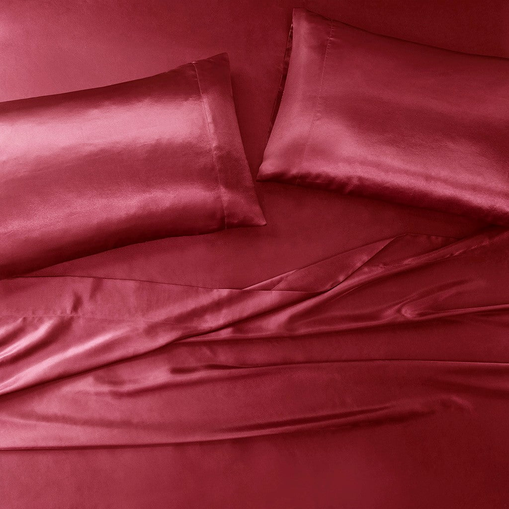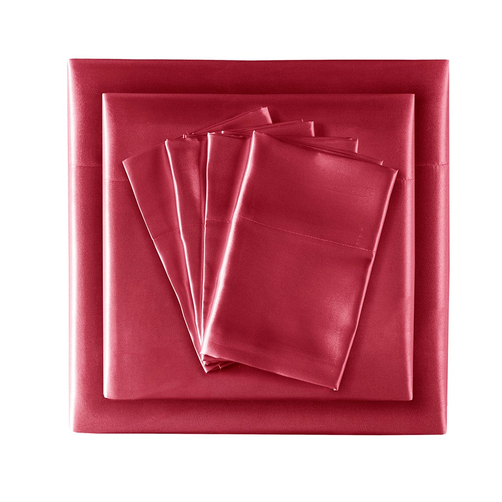 Satin Luxury 6 PC Sheet Set - Red - Cal King Size