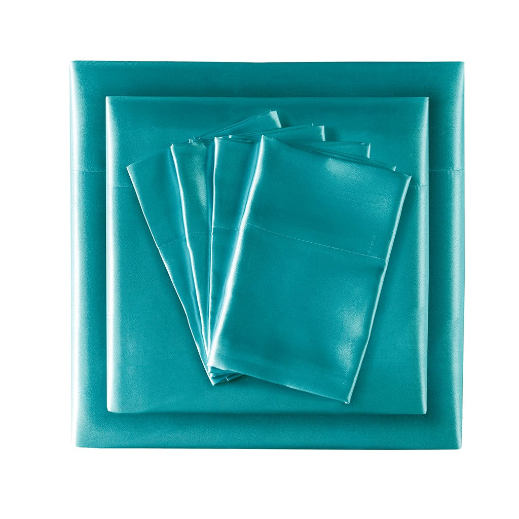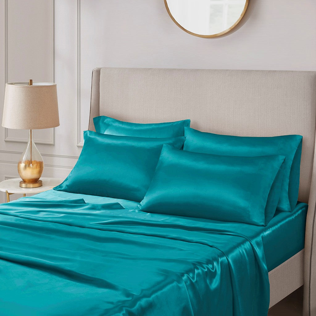 Satin Luxury 6 PC Sheet Set - Teal - King Size