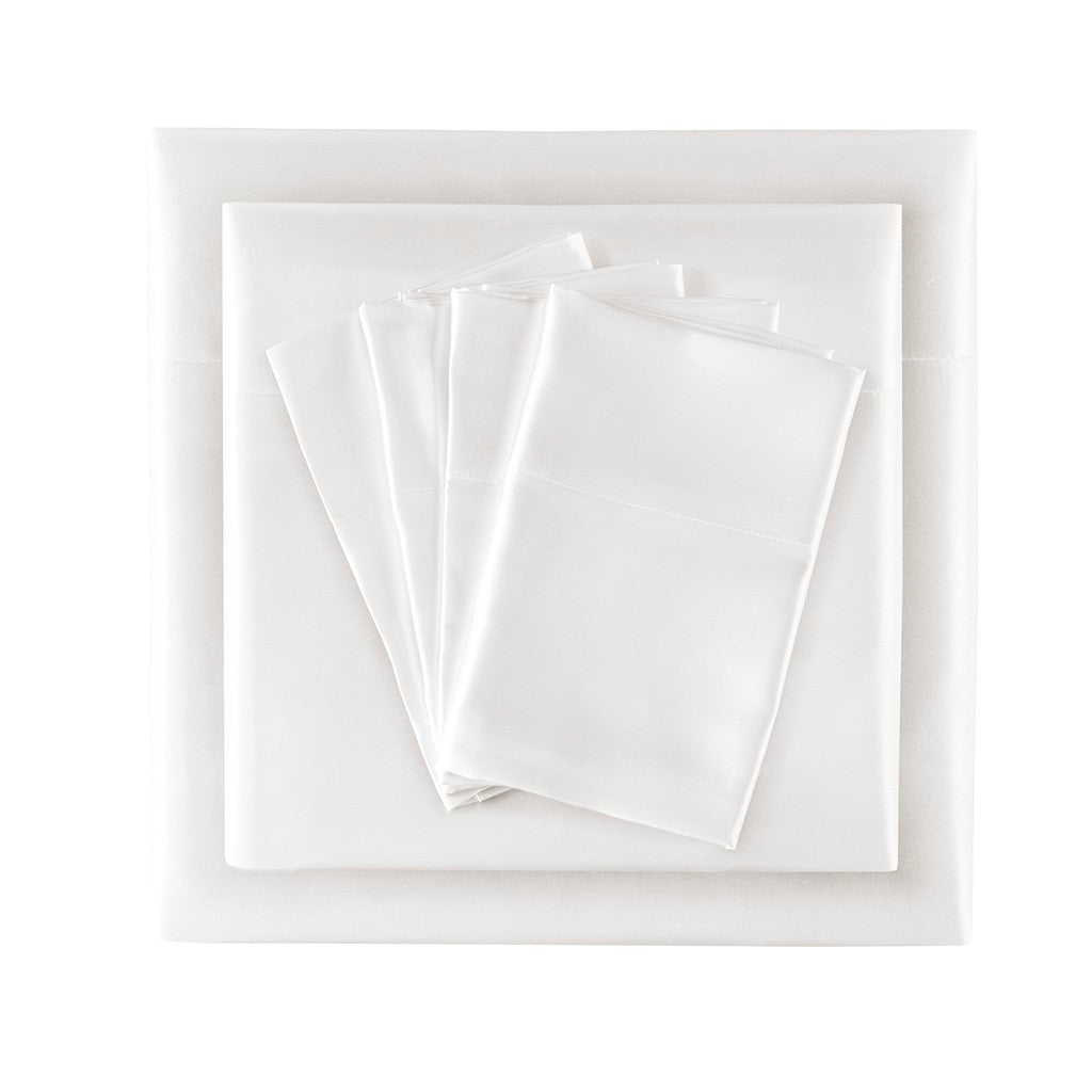 Satin Luxury 6 PC Sheet Set - White - Cal King Size