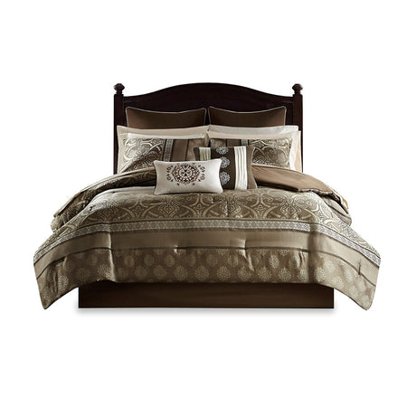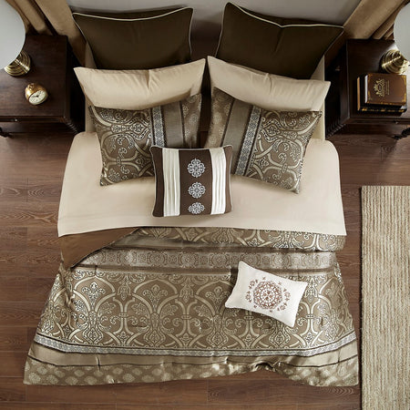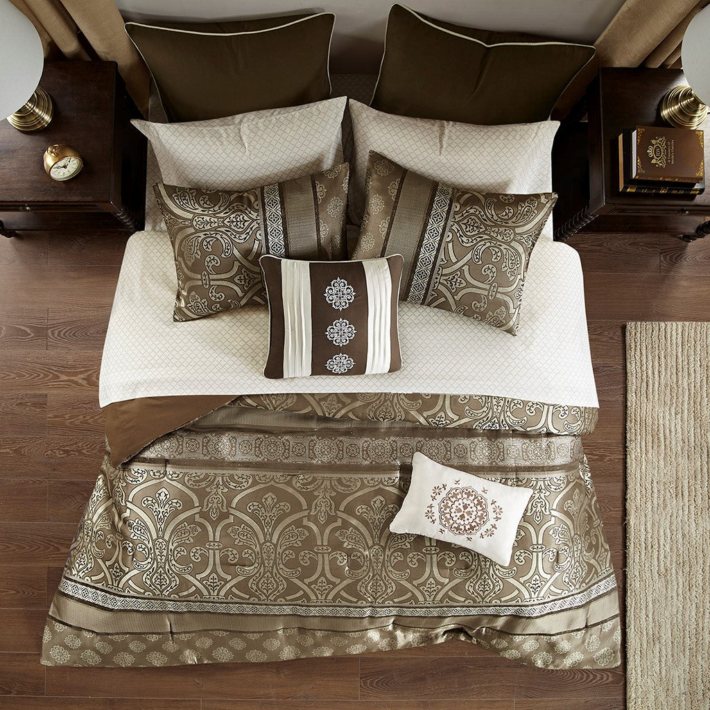 Zara 16 Piece Jacquard Comforter Set with 2 Bed Sheet Sets - Brown - Cal King Size