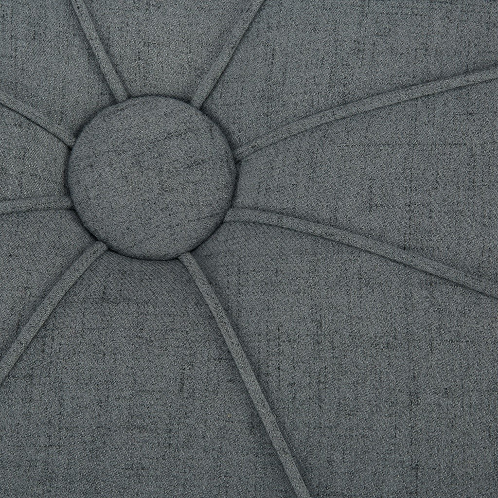 Oversized and in an unexpected shape the Ferris Ottoman will blend into many different decors. Thick welting and center button are topped off with a charcoal grey flannel fabric. No assembly required.