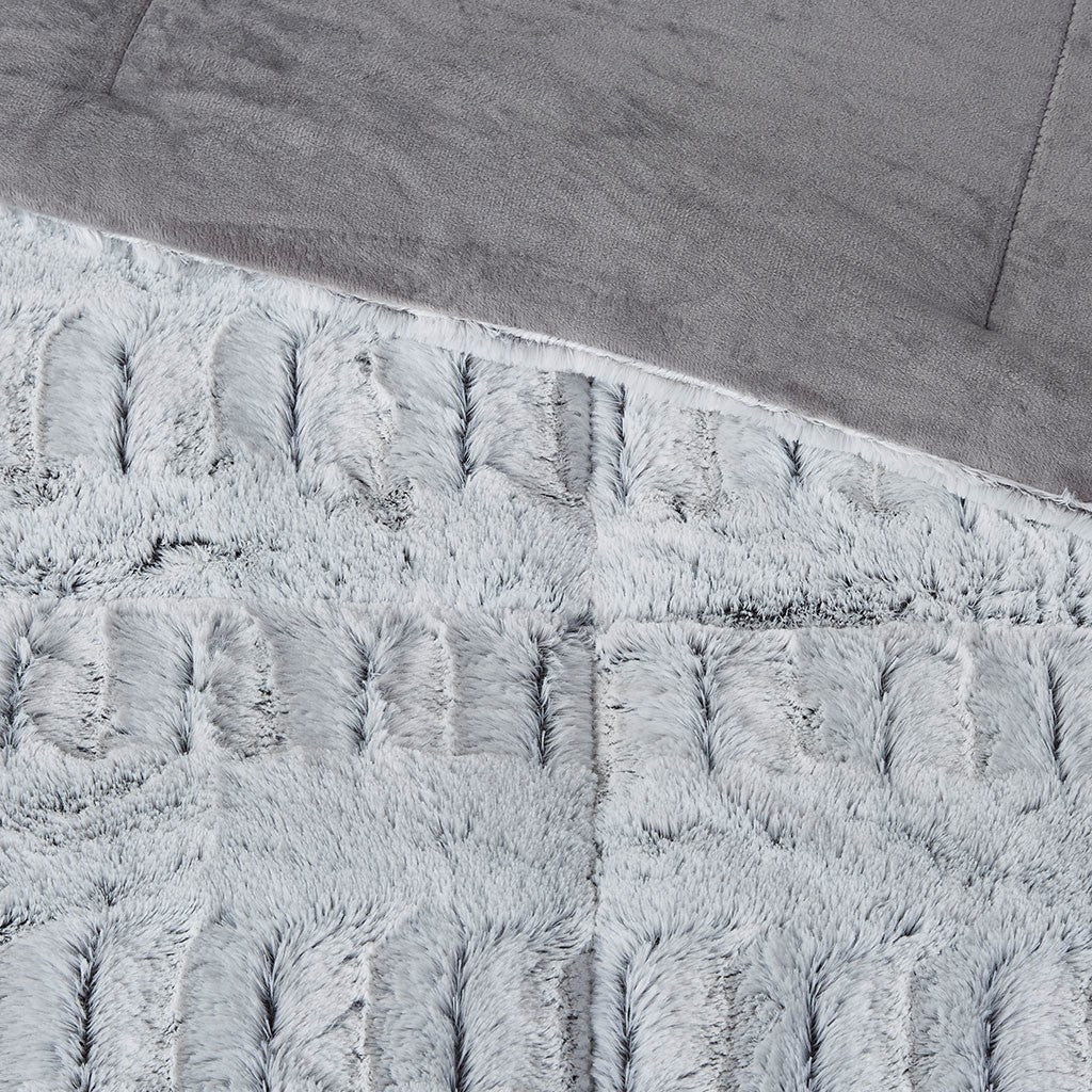 Gia Back Print Long Fur Comforter Mini Set - Grey - King Size / Cal King Size