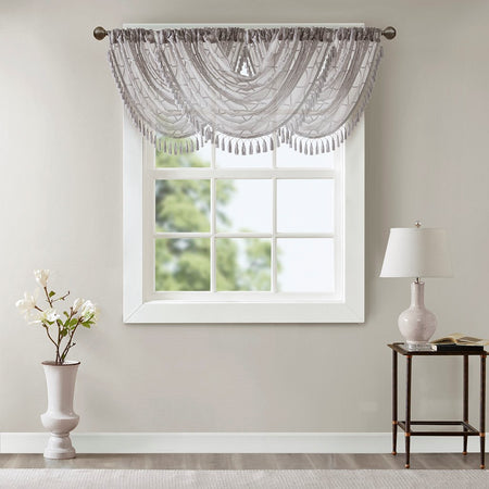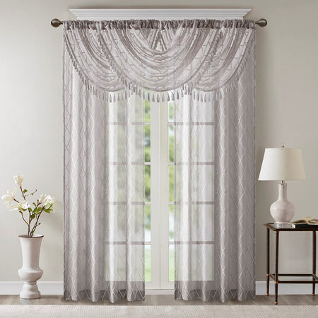 Irina Diamond Sheer Embroidered Waterfall Valance - Grey - 38x46"
