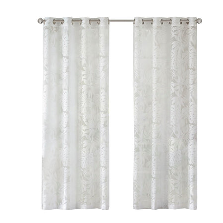 Bring a touch of paradise into your home, with our Madison Park Leilani Palm Leaf Sheer Window Curtain. This panel combines an intricate burnout palm leaf design on a lightweight white sheer, creating soft dimension for a relaxed and updated look. This window panel is also OEKO-TEX certified, meaning it does not contain any harmful substances or chemicals, ensuring quality comfort and wellness. The antique silver grommet top finish makes this window curtain easier to hang, open, and close throughout the day. Fits up to a 1.25" diameter rod.