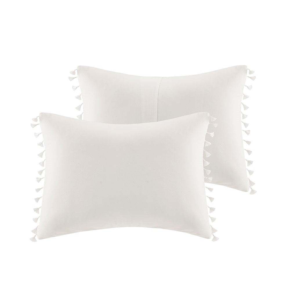 Give your bedroom a truly relaxing appeal with the casual style of Madison Park's Lillian Cotton Comforter Set. The 100% cotton percale comforter flaunts tassel-trimmed edges for a charming bohemian look. The matching shams (1 for Twin Sizes) feature envelope-style closures that help keep your pillows secure and maintain the clean aesthetic. With its beautiful ivory hue, this cotton comforter set pairs easily with most decors and is machine washable for easy care.