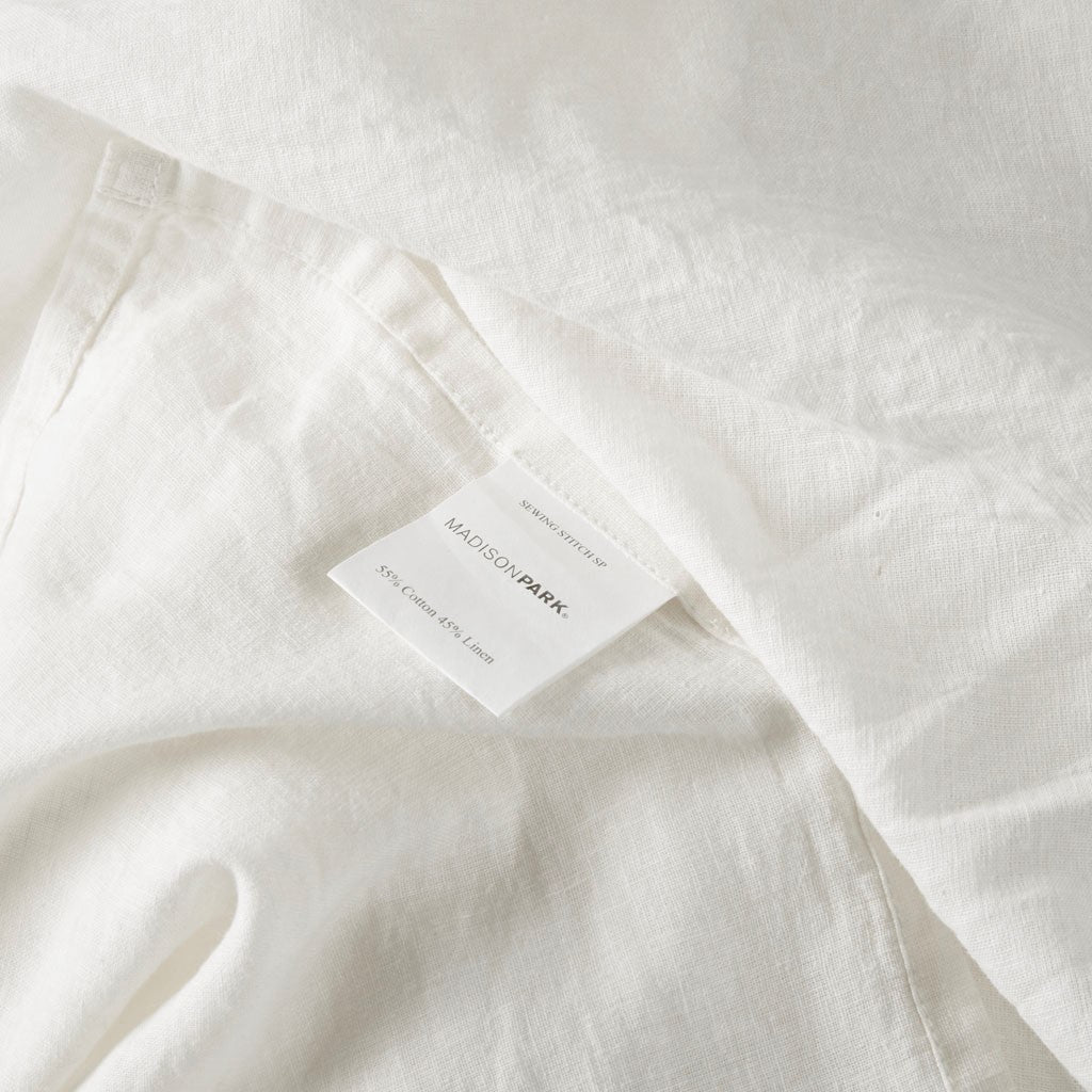 Experience refreshing comfort with the Madison Park Linen Blend 4 Piece Sheet Set. Made from breathable cotton that has been paired with the rich texture of linen, this sheet set is incredibly soft and absorbent to create a luxurious look and feel. The hemstitching adds a decorative touch, while also adding durability to the seams. The fabric comes pre-washed to improve durability and softness. Simple and clean, this linen blend sheet set offers a casual and relaxing addition to your bedroom. Machine washable for easy care, this solid sheet set is OEKO-TEX certified, meaning it does not contain any harmful substances or chemicals to ensure quality comfort and wellness. Set includes: 2 Pillowcases, 1 Flat Sheet, and 1 Fitted Sheet.