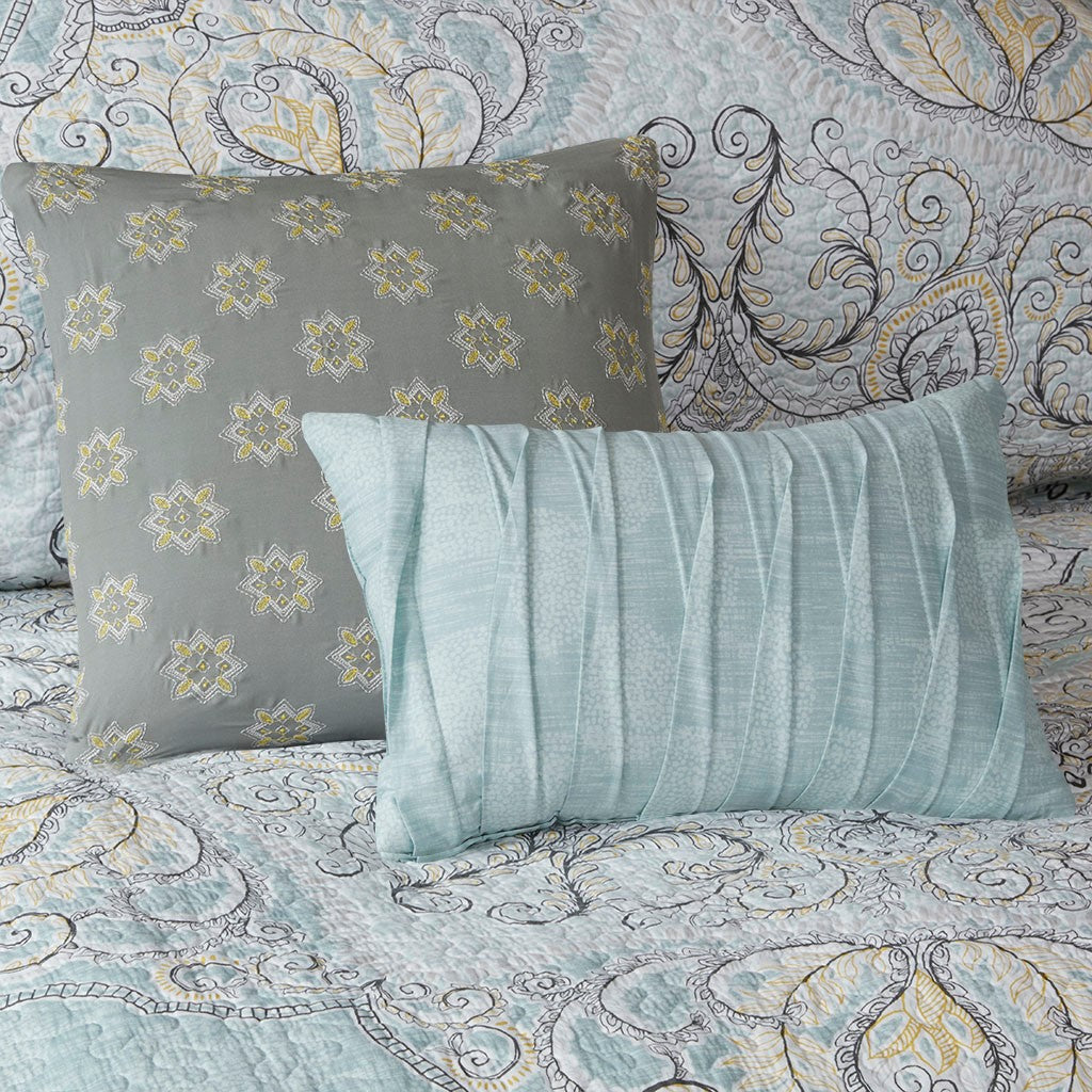Lucinda 6 Piece Reversible Cotton Quilt Set with Throw Pillows - Seafoam - King Size / Cal King Size