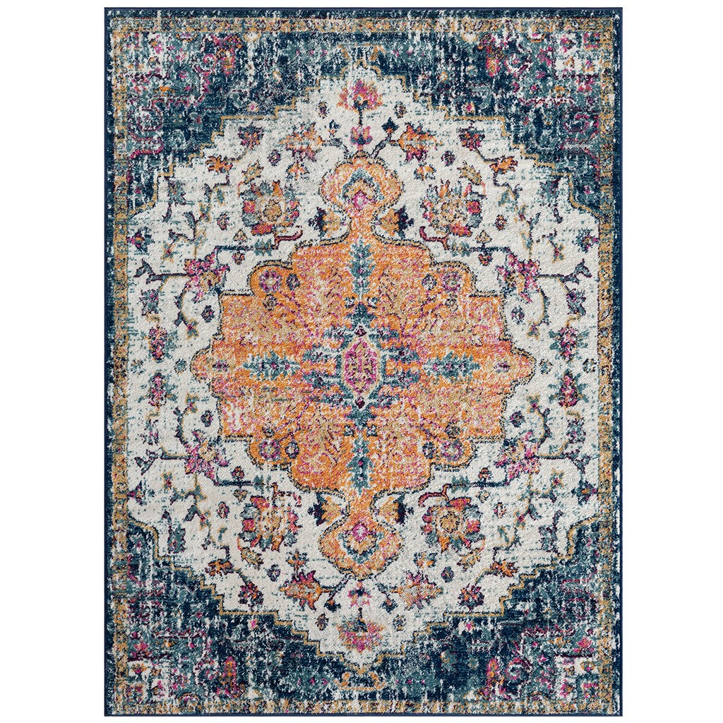 Bring a striking color and style to your home with the Madison Park Mateo Boho Medallion Multi Woven Area Rug. Made in Turkey, this area rug features a boho-inspired medallion pattern in shades of orange and blue creating a vibrant globally inspired look. The soft, medium pile makes the woven rug well suited for high traffic areas, while the transparent sprayed latex reverse helps keep the rug from sliding. A rug pad is still highly recommended to keep the rug in place. Stain and fade resistant, this woven area rug is OEKO-TEX certified, meaning it does not contain any harmful substances or chemicals to ensure quality comfort and wellness. Rug is available in multiple sizes, which makes it perfect for your living room, family room, or entryways. To clean, use a vacuum or spot clean.