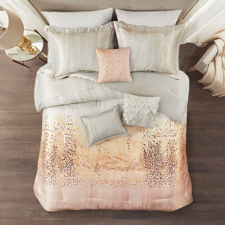 Midnight Garden 7 Piece Metallic Print Comforter Set - Blush - Cal King Size
