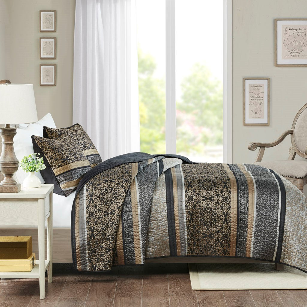 Miramar 3 Piece Reversible Cotton Coverlet Set - Gray - Full Size / Queen Size