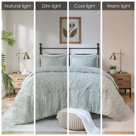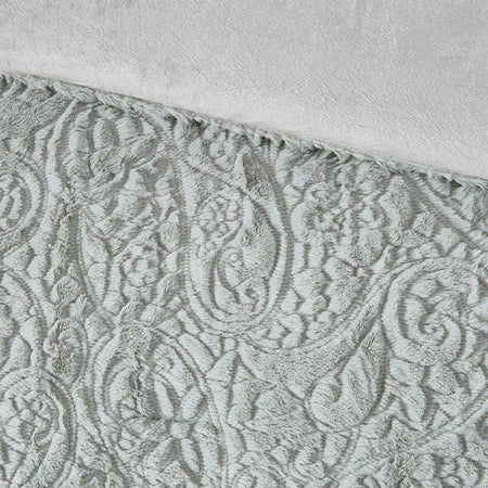 Add warmth and comfort to your bed with the Ultra Plush Comforter Set. The plush faux fur is incredibly soft and features a beautiful paisley design for added texture and dimension. The set is machine washable for easy care and OEKO-TEX certified, meaning it does not contain any harmful substances or chemicals to ensure quality comfort and wellness. Items in the set may come in a rolled or compressed packaging, which will need to be fluffed up or steam ironed before use to remove wrinkles.