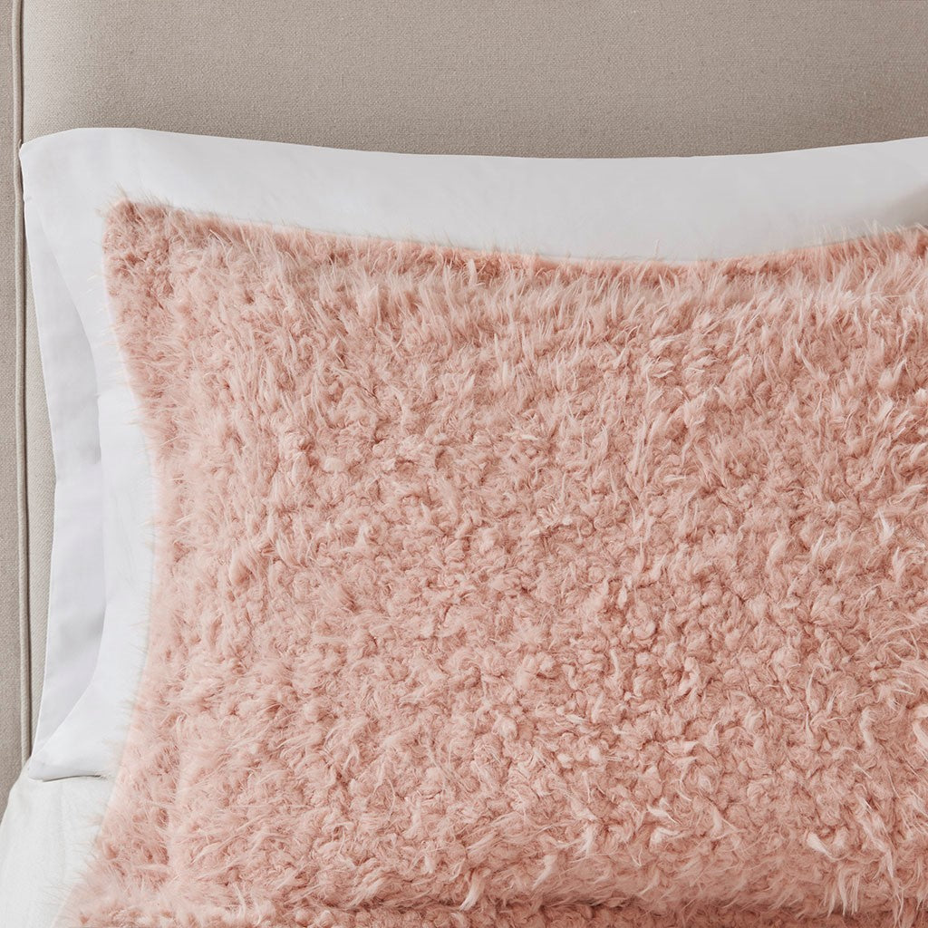 Nova Blush Faux Mohair Reverse Faux Mink Comforter Set - Blush - Twin Size