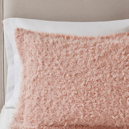 The Madison Park Nova Mohair Comforter Set offers a luxuriously soft touch glamorize your bedroom decor. This faux fur comforter set features faux mohair face and a faux mink reverse in a blush hue, for an ultra-soft look and feel. Matching sham(s) coordinate with the warm comforter to create chic and cozy appeal, while end-to-end box quilting prevents the filling from shifting. Feel the cozy warmth the moment you tuck yourself in with this mohair comforter set. Set includes: 1 comforter and 2 shams (1 sham for twin sizes). Items in the set may come in a rolled or compressed packaging, which will need to be fluffed up or steam ironed before use to remove wrinkles.