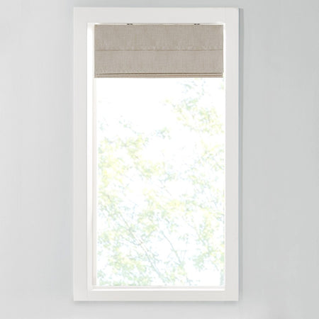 - Beautiful faux linen textured blackout roman shade 64 inches long in natural tone