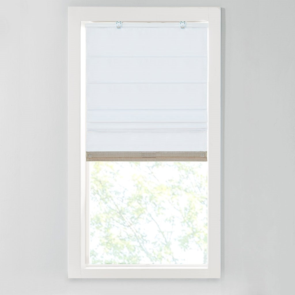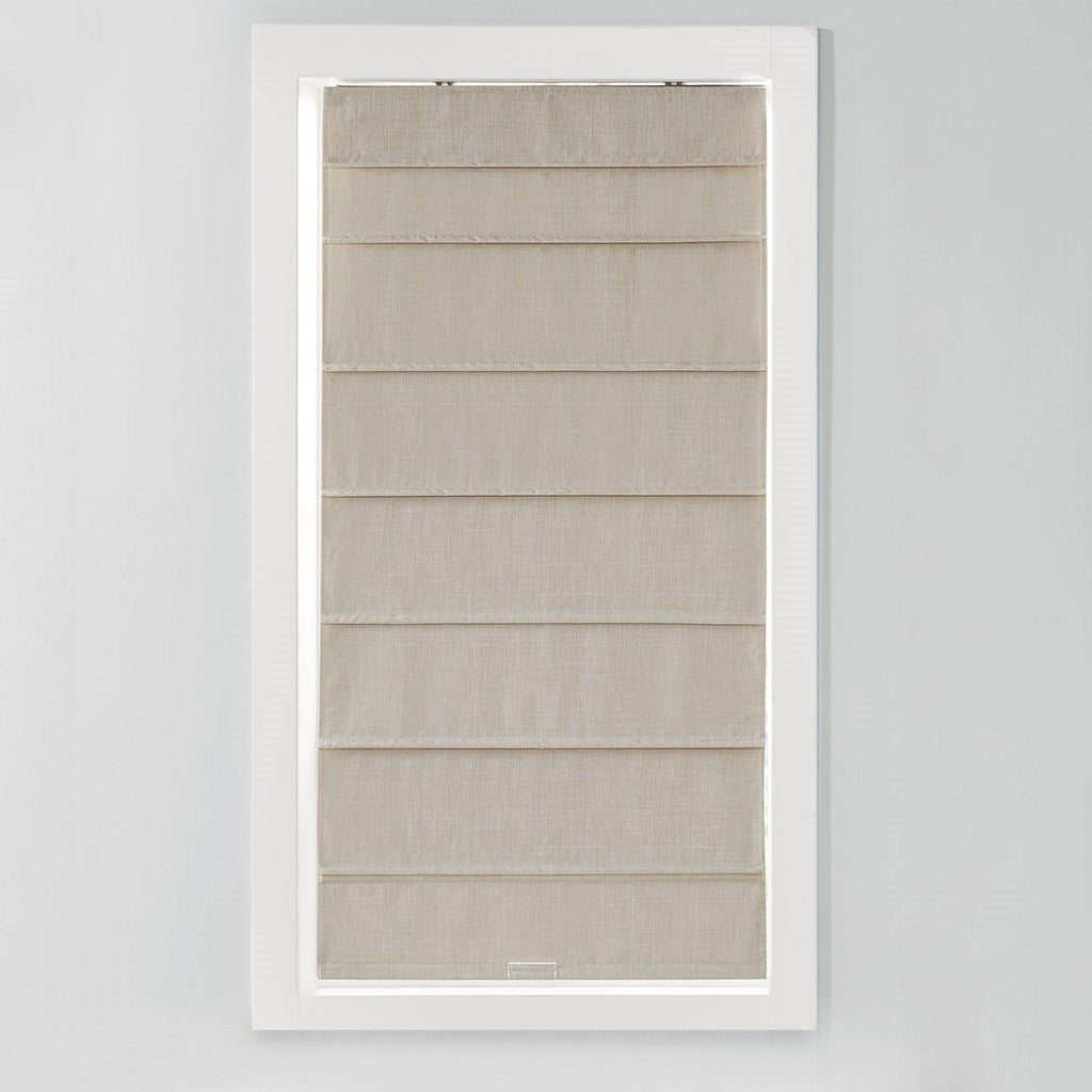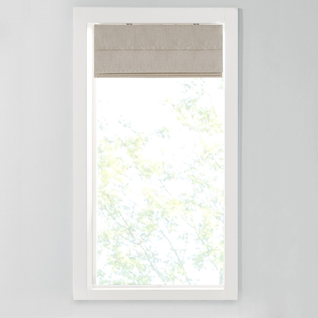 Simple in design and easy to set up, this Madison Park Otis blackout roman shade offers a convenient and functional update to your space. The soft natural linen-like shade is lightweight and features a foamback thermal lining for energy efficiency and added privacy; as the weighted hem and bracket at the bottom keeps the shade locked and secured in place. A cordless retraction mechanism makes it easy to open and close the blackout shade throughout the day, while also providing safety for pets and children. With two mounting options for easy assembly, this cordless roman shade is an easy addition to makes any room in your home more comfortable and elevated. Each shade is true to size with no deductions and sold as a single; Roman Shades are available in 4 widths sizes and one standard length size of 64"; assembly is required with hardware included.