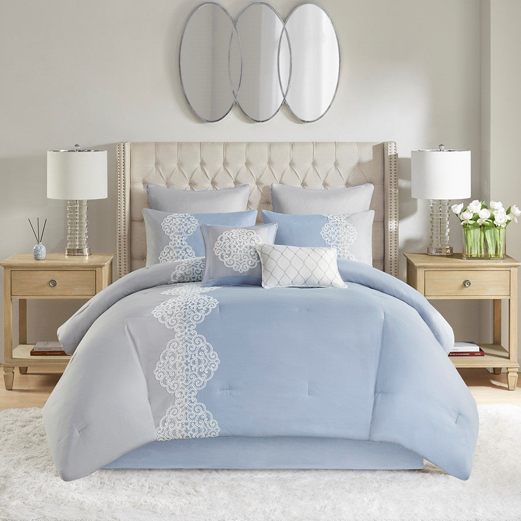 Panache 8 Piece Embroidered Microfiber Comforter Set - Blue - King