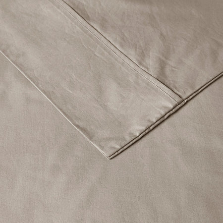 Peached Percale Cotton Peached Percale Sheet Set - Khaki - Queen Size
