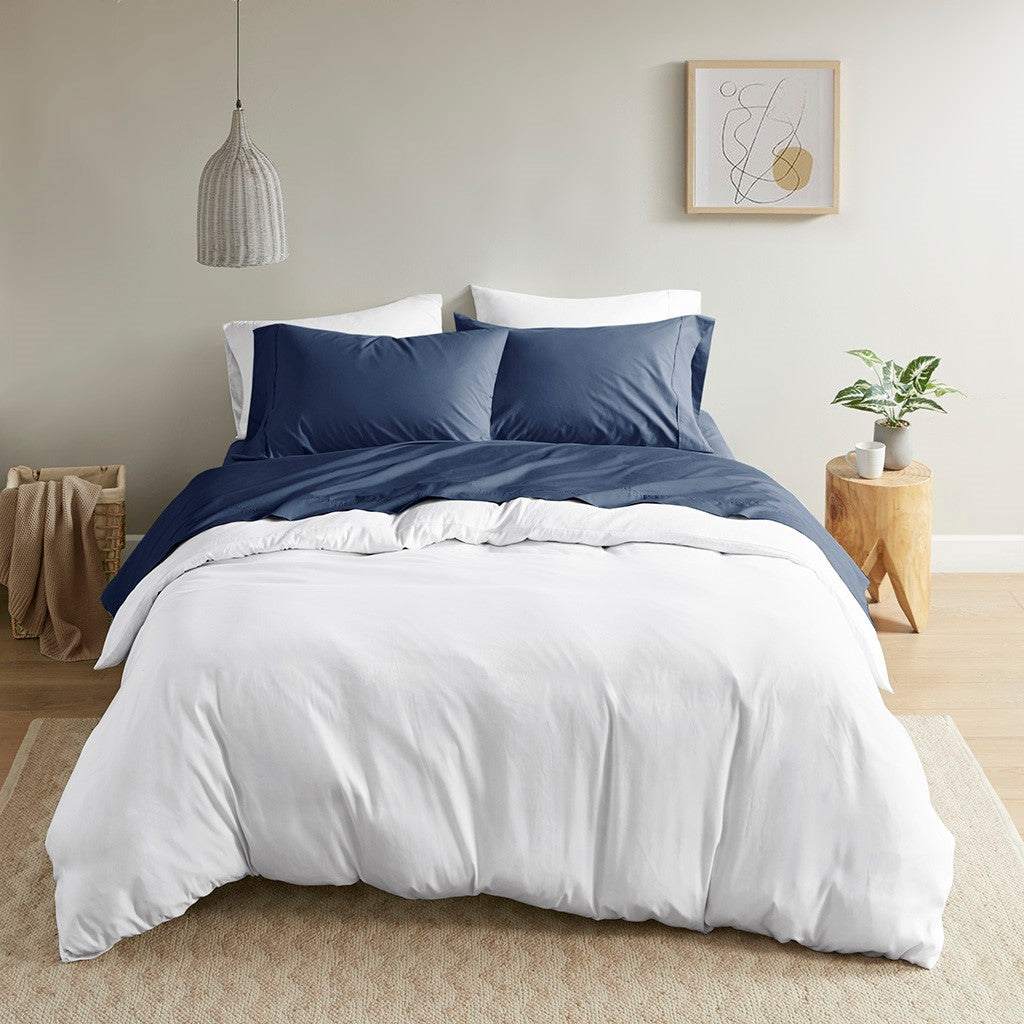 Peached Percale Cotton Peached Percale Sheet Set - Navy - Cal King Size