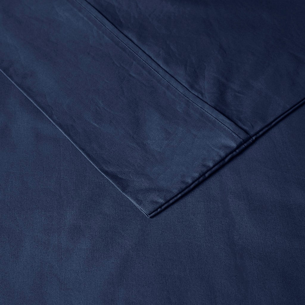 Peached Percale Cotton Peached Percale Sheet Set - Navy - King Size