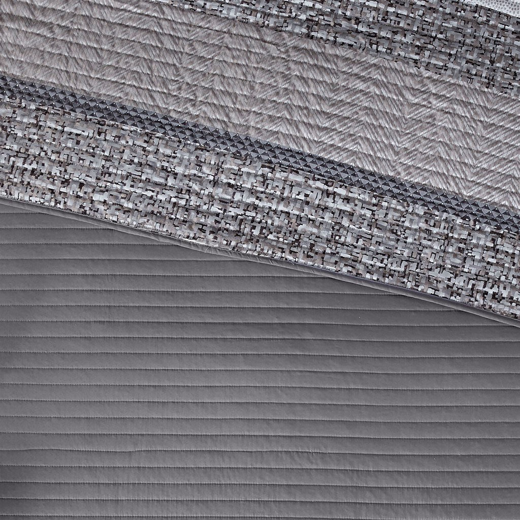 Rhapsody 6 Piece Reversible Jacquard Quilt Set with Throw Pillows - Grey / Taupe - King Size / Cal King Size