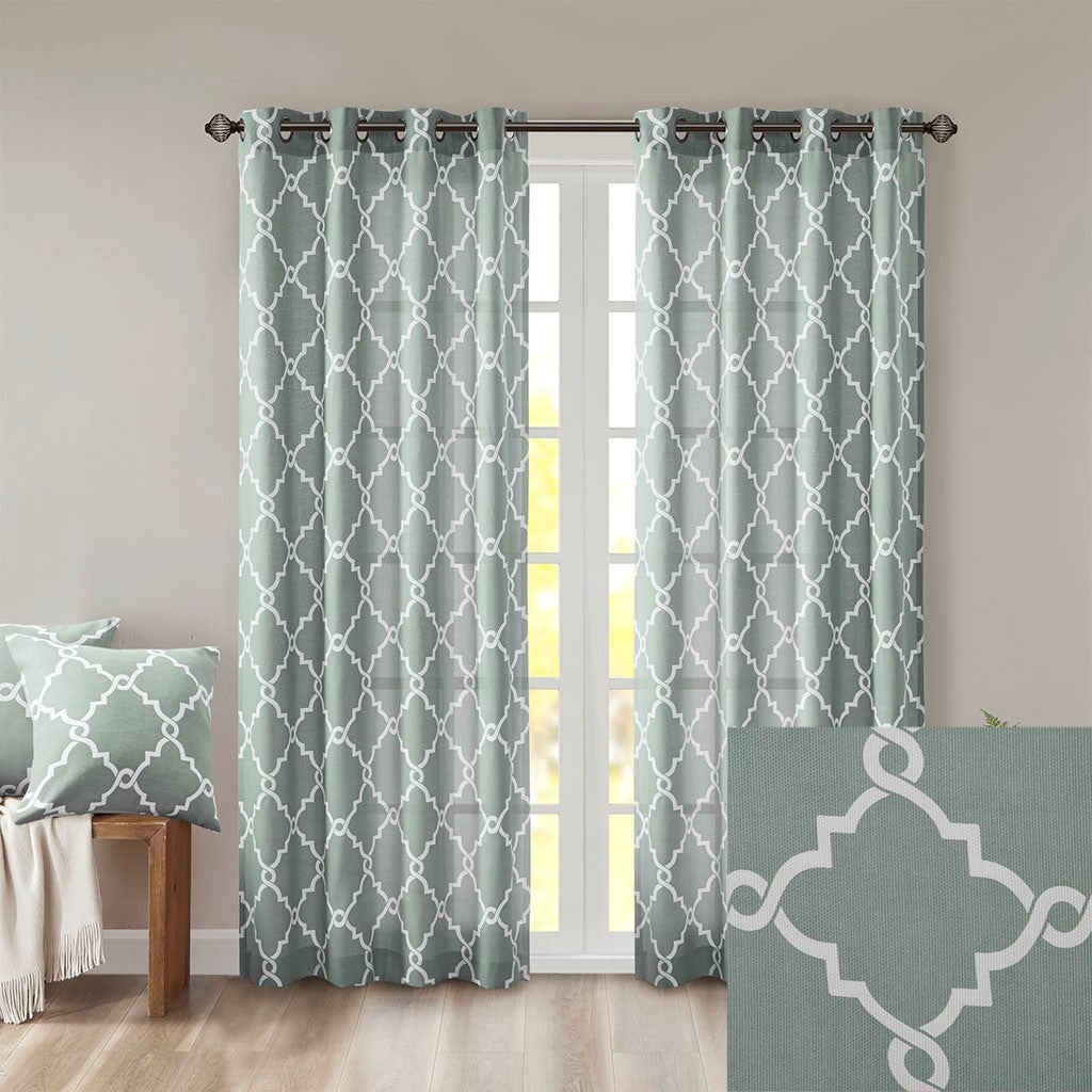 Saratoga Fretwork Print Grommet Top Window Curtain - Seafoam - 50x84"