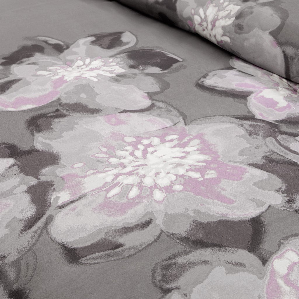 - Large watercolor floral design in grey and lavender colors