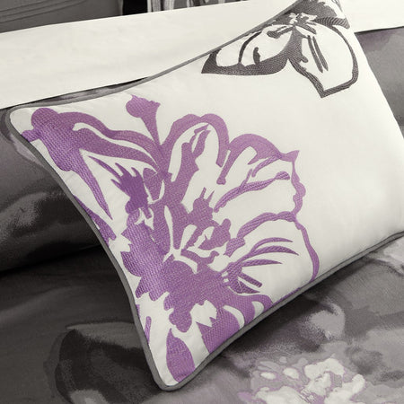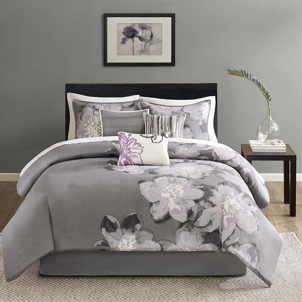 The Madison Park Serena 7 Piece Serena Comforter offers a soft touch of beauty to your bedroom. This cotton comforter features a large watercolor floral print in soft hues, for a chic transitional look. Matching shams repeat the floral design to complement the comforter, while three decorative pillows with embroidery and fabric manipulation at dimension to the top of the bed. A solid bed skirt provides the finishing touch to this comforter set. This bedding set is also OEKO-TEX certified, meaning it does not contain any harmful substances or chemicals to ensure quality comfort and wellness.