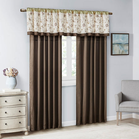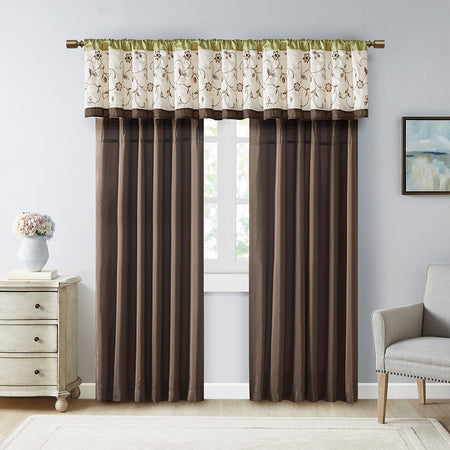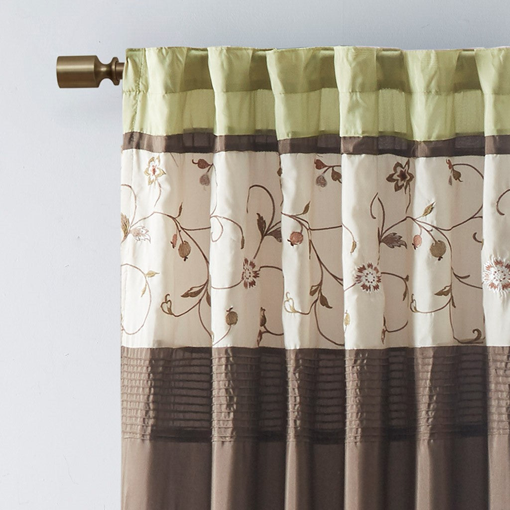 Add simple elegance to any room with the Madison Park Serene Embroidered Window Panel. This window curtain features delicate floral embroidery in soft green and natural hues, offering beautiful contrast for a sophisticated look. The pieced and pleated details provide extra dimension and charm to your home decor, while added lining helps filter the perfect amount of sunlight into your home. Simply hang with rod pocket or backs tabs for a tailored look. Fits up to a 1.25" diameter rod.