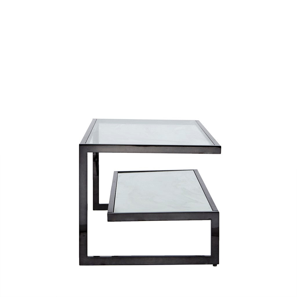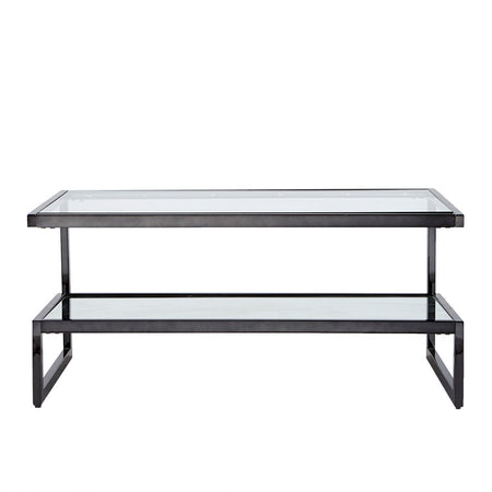 The Madison Park Signature Boyd Coffee Table introduces an eye-catching update to your decor. This metal end table flaunts a simple stacked design with a glass table top and a mirrored lower shelf, for a striking look. A black chrome metal finish adds bold and elegant touch that adds a modern appeal to the traditional design. Stunning and unique, this coffee table is sure to make a statement in your home.