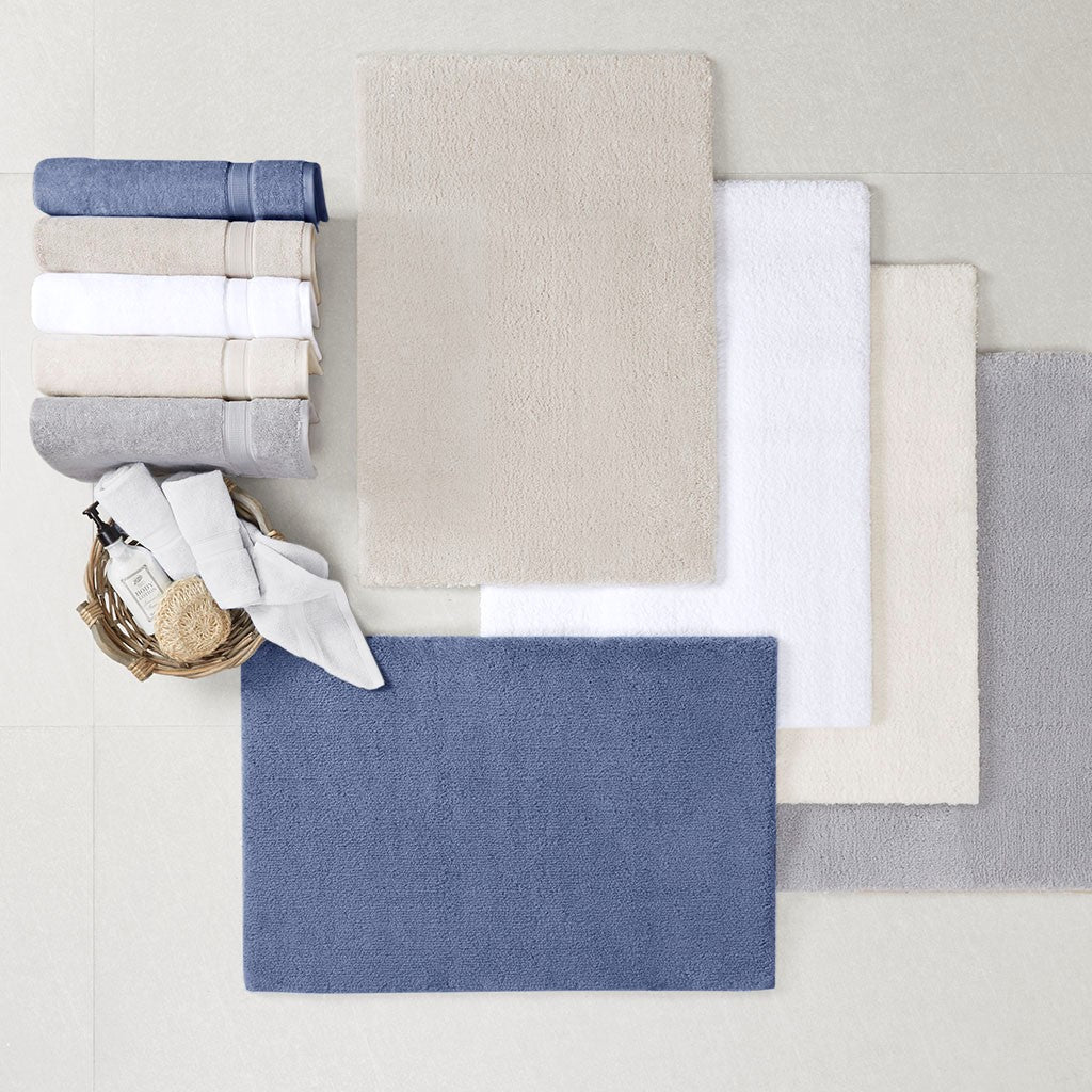 Complete your bathroom with our Madison Park Signature Marshmallow Contour Bath Rug. This spa-quality bath rug is made of resilient high pile tufted microfiber for an incredibly plush feel, while also featuring a proprietary quick-dry technology keeping rug feeling soft and dry each time you step onto it. The heavy duty non-skid latex backing helps keep the rug in place throughout the day, while also making the rug skid resistant for better safety. This luxurious bath rug is also OEKO-TEX certified, meaning it does not contain any harmful substances or chemicals to ensure quality comfort and wellness. Machine washable for easy care; each contour rug comes in soft fade resistant colors for long lasting and can easily be paired with any size option in our Madison Park Signature Marshmallow bath rug collection!