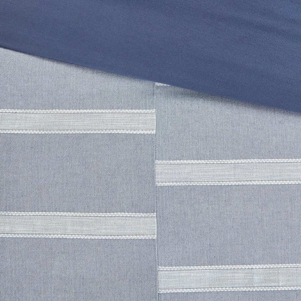 - Elegant casual farmhouse style cotton woven stripe pieced comforter set in blue and white