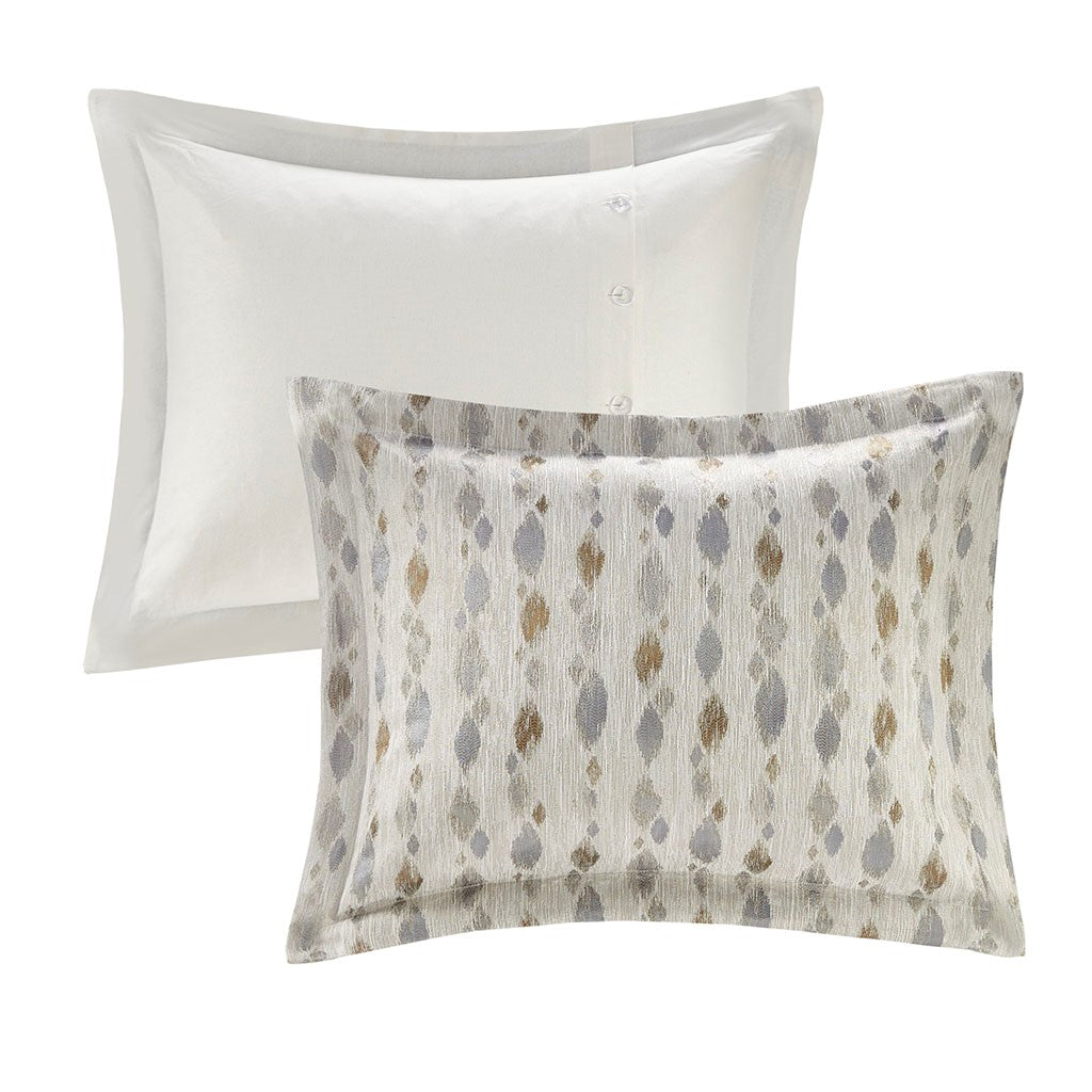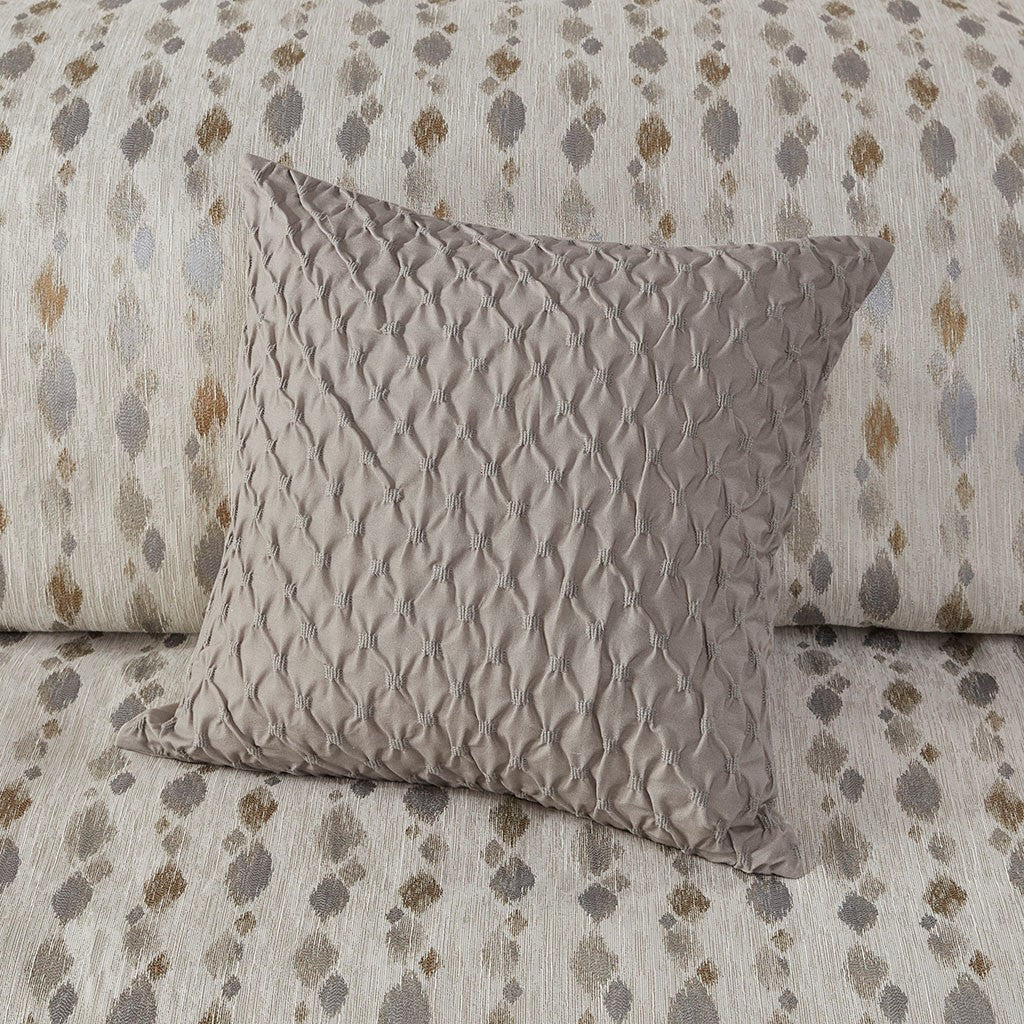 - Set includes comforter, 2 shams, 2 euro shams (3 in King size), 2 square and 1 oblong decorative pillows