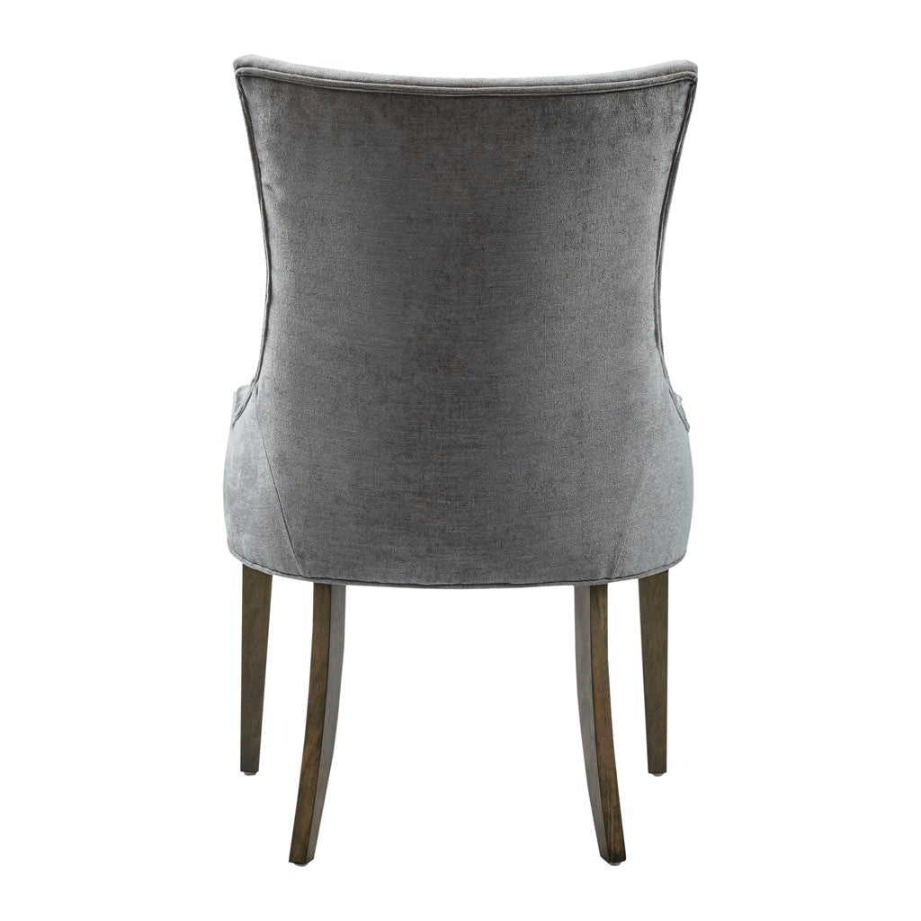The Madison Park Signature Ultra Dining Side Chair Set adds an elegant touch to your dining area. The dark grey upholstery complements the charcoal grey finish on the wood legs for a sophisticated look. With their tight backs and seats, these upholstered dining side chairs are a great addition to your dining room table. Leg assembly is required and no tools needed.