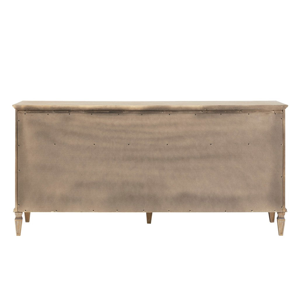 French inspired 6 drawer dresser with a wire brushed natural finish with grey highlights. Leg assembly required.