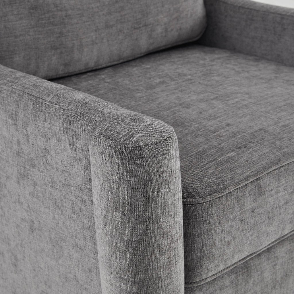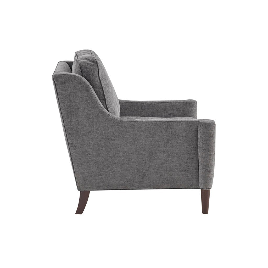 Simple, yet elegant the Madison Park Signature Windsor Lounge provides a gorgeous update to your home decor. This traditional styled lounge features swoop arms and tapered legs to create a chic silhouette. The dark grey upholstery contrasts beautifully with the Moroccan finish on the wood legs. A removable seat cushion is filled with high-density foam filling to provide you with an incredibly soft and comfortable seating experience. Incorporate this upholstered lounge into your home to complete the look of your living room. Leg assembly required, no tools needed.