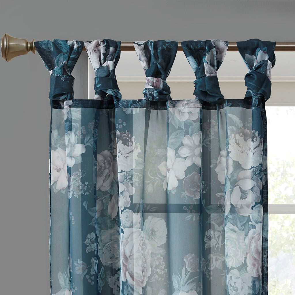 The Madison Park Simone Printed Floral Twist Tab Top Voile Sheer brings a soft and romantic touch to your home decor. This voile sheer curtain panel features a beautiful blush and neutral printed floral on a dark navy ground for a rich and stylish contrast, while the lightweight fabric adds a delicate and airy touch. Our twist tab top finish allows you to create a DIY design for a unique and stylish touch to your window decor; assembly required for twist tabs - printed directions are included in packaging and video support also available onsite. Each panel is sold separately and machine washable for easy care; Fits up to a 2" diameter curtain rod. These curtains are perfect on its own as a decorative sheer or even better when layered with either coordinating scarf or our Madison Park Emilia solid twist tab panels for a more intricate update!