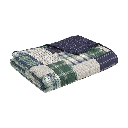 Rich in color, the Madison Park Timber 3 Piece Reversible Printed Coverlet Set offers a lodge style update for your bedroom. This reversible rustic coverlet features a patchwork print, in green and navy hues, for a cabin-inspired look.