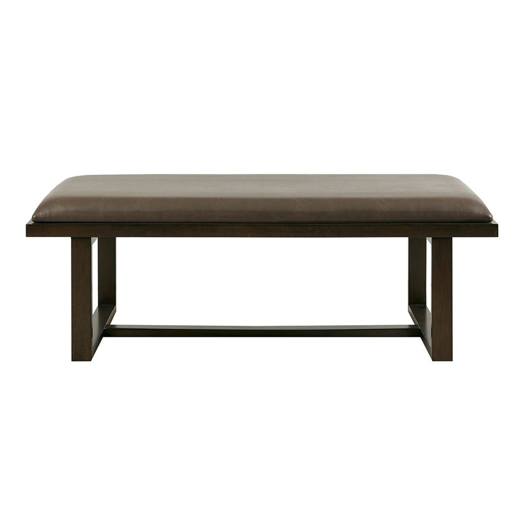 The Tracey Faux Leather Cocktail Ottoman offers a stunning combination of refined style and elegant design to elevate your decor. This rectangular ottoman features a faux leather upholstered seat with a wood trim, for a chic transitional look. The solid wood base flaunts a dark coffee finish completes the sophisticated design and complements your home decor. Assembly is required and a tool is included.