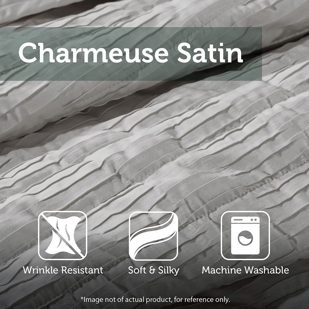 Comforter & Sham: 100% polyester charmeuse, 100% polyester brushed fabric reverse, 270g/m2 poly fill