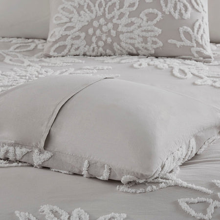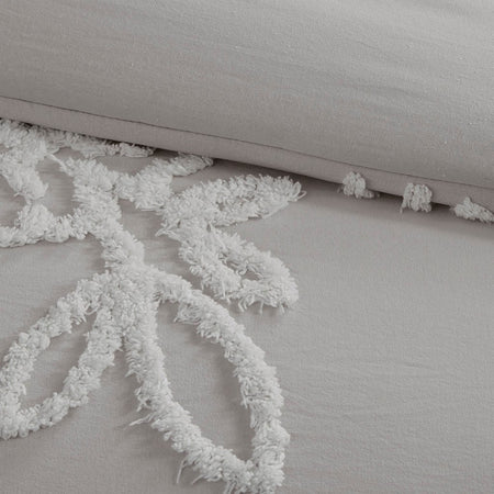 Veronica 3 Piece Tufted Cotton Chenille Floral Comforter Set - Grey / White - King Size / Cal King Size