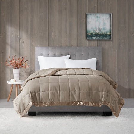 Windom Lightweight Down Alternative Blanket with Satin Trim - Brown - Full Size / Queen Size