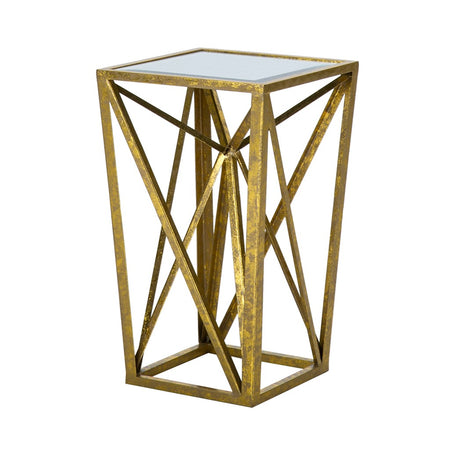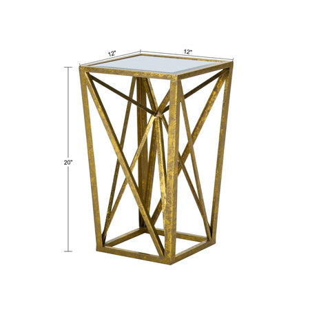 The Zee accent table brings elegance to any room with its modern angular shape. Featuring a faux gold leaf finish and beveled glass tabletop, this end table is sure to shine in the living room. No assembly required